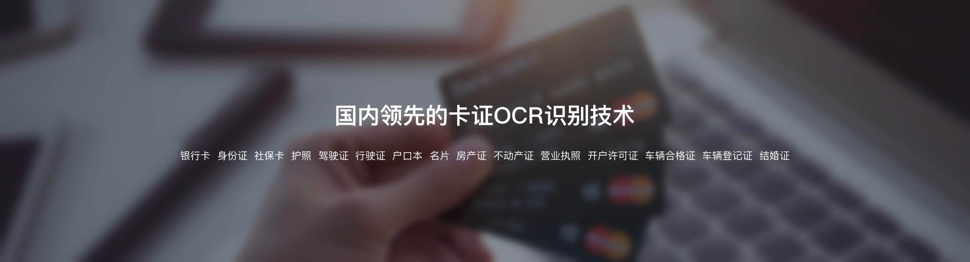 國(guó)內(nèi)領(lǐng)先的卡證OCR識(shí)別技術(shù),可準(zhǔn)確識(shí)別常見的數(shù)十種證件、卡片,包括銀行卡、身份證、社???、護(hù)照、駕駛證、行駛證、戶口本、名片、房產(chǎn)證、不動(dòng)產(chǎn)證、營(yíng)業(yè)執(zhí)照、開戶許可證、稅務(wù)登記證、組織機(jī)構(gòu)代碼證、車輛合格證、車輛登記證、香港身份證、結(jié)婚證、離婚證等 。支持Windows、Linux、Android等平臺(tái),也可提供個(gè)性化定制開發(fā)服務(wù)。